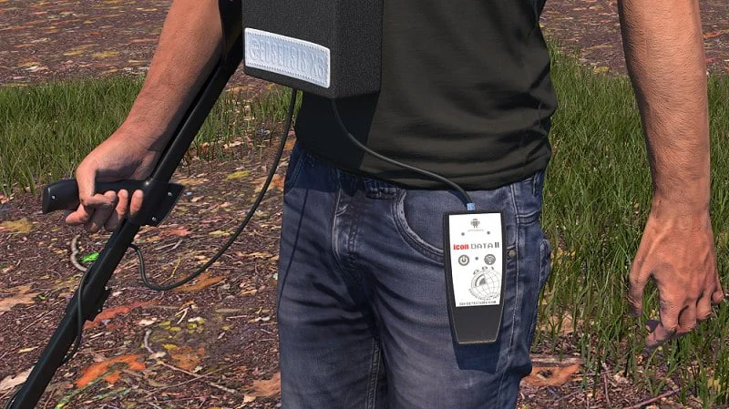 La unidad ICON DATA II lee cientos de señales del detector cada segundo. Las señales se convierten en datos digitales y se transmiten a través de una conexión inalámbrica en una tableta Android. Desde allí, la imagen subterránea se muestra mediante la aplicación suministrada. También se puede solicitar una tableta Android preconfigurada con la aplicación del registrador de datos ICON DATA II. El registrador de datos ICON DATA II muestra la imagen del objetivo detectado inmediatamente mientras el usuario opera el detector de metales en el campo. Sin controles complejos con los que lidiar, sin detenerse para descargar y sin perder tiempo.